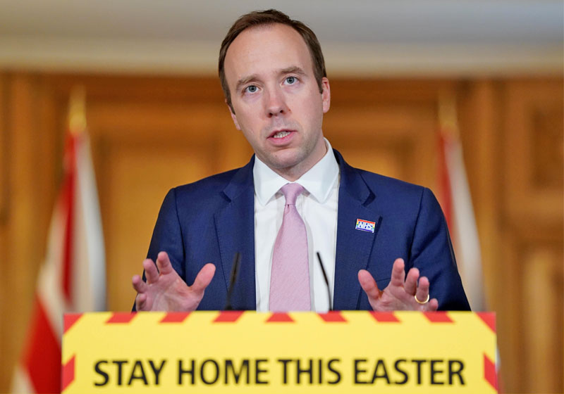 นายแมตต์ แฮนค็อก รัฐมนตรีว่าการกระทรวงสาธารณสุขอังกฤษ เผยว่า วันนี้เป็นวันแห่งความโศกเศร้าของประเทศ จากความสูญเสียครั้งใหญ่ หลังยอดผู้เสียชีวิตด้วยไวรัสโควิด-19 เพิ่มขึ้นเกินหมื่นราย พร้อมยอมรับว่าตัวเลขดังกล่าวเป็นรายงานยืนยันเฉพาะผู้ป่วยที่เสียชีวิตในโรงพยาบาล ไม่รวมผู้เสียชีวิตนอกสถานพยาบาล ซึ่งคาดว่ามีอีกจำนวนมาก