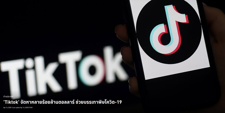 ติ๊กตอก (TikTok) แอปพลิเคชันแบ่งปันคลิปวิดีโอชื่อดังจากประเทศจีน สัญญาว่าจะจัดหาเงินกว่า 250 ล้านดอลลาร์สหรัฐ หรือราว 8.18 พันล้านบาท เพื่อสนับสนุนเจ้าหน้าที่ทางการแพทย์ผู้ทำงานในแนวหน้า ผู้ให้ความรู้ และชุมชนท้องถิ่นที่ได้รับผลกระทบจากการแพร่ระบาดโควิด-19