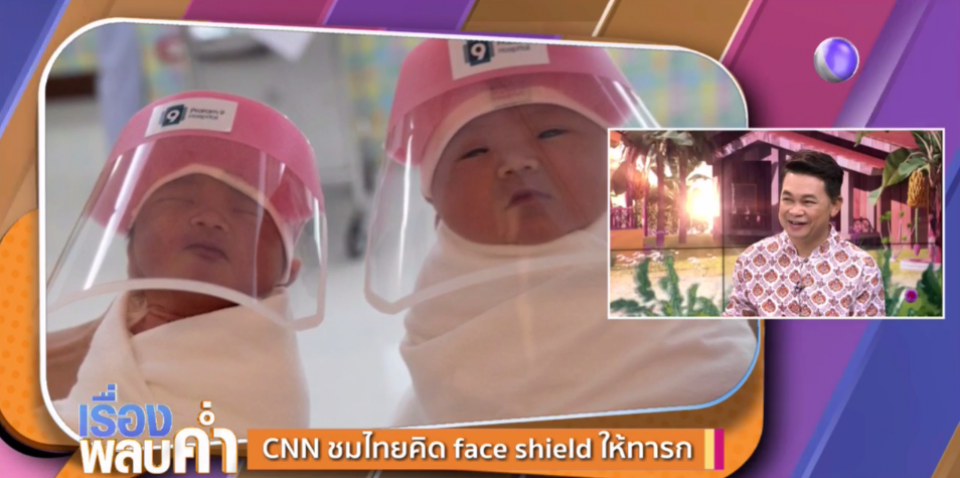 15 เม.ย.-จากที่โรงพยาบาลพระราม 9 ได้ออกแบบ Face Shield สวมใส่ให้ทารกเพิ่งคลอดเพื่อป้องกันโควิด-19 แล้วได้นำภาพน่ารักๆนี้แชร์ในโลกโซเชียล ตอนนี้กลายเป็นเรื่องที่ถูกส่งต่อไปยังทั่วโลกแล้วเพราะ CNN นำเรื่องนี้ไปเสนอ และบอกด้วยว่า เป็นเรื่องน่ารัก น่าชมเชยของคนไทยที่ออกแบบหน้ากากป้องกันไวรัสให้เด็กทารกแรกเกิดที่โรงพยาบาล เป็นภาพข่าวที่ช่วยคลายเครียดในขณะนี้ https://tpc.googlesyndication.com/safeframe/1-0-37/html/container.html