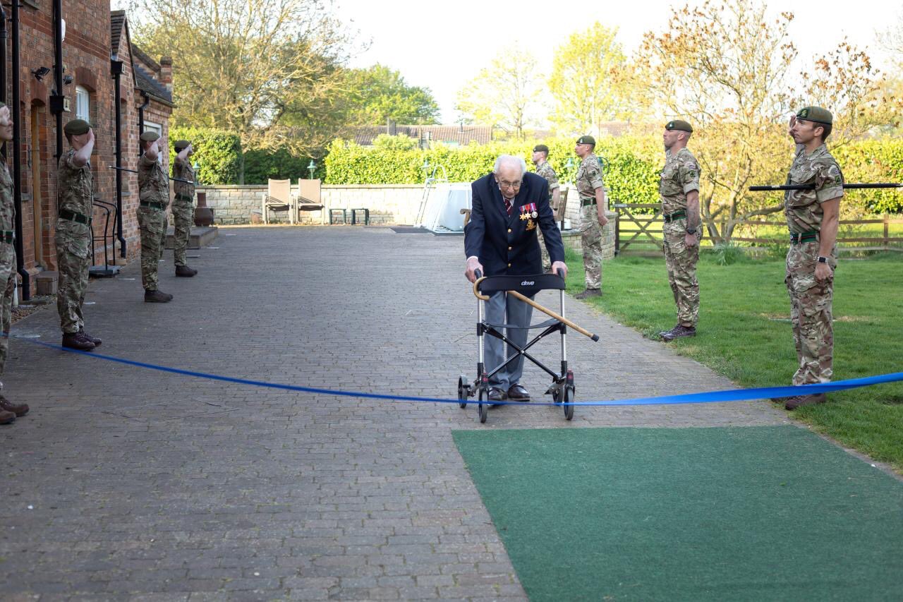 ภาพที่ นายมัวร์ มุ่งมั่นตั้งใจออกเดินพร้อมกับรถเข็นช่วยเดิน สร้างความประทับใจให้กับผู้คนทั่วอังกฤษและทั่วโลก อีกทั้งสร้างกำลังใจให้คนมองโลกในแง่ดี จนทำให้มีคนร่วมบริจาคอย่างล้นหลาม