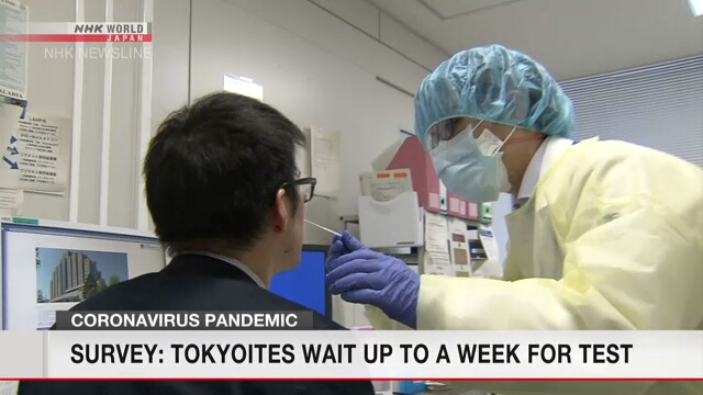 ผลการสำรวจของ NHK พบว่า ประชาชนในกรุงโตเกียวที่อยู่ในข่ายต้องสงสัยว่าติดเชื้อไวรัสโคโรนาสายพันธุ์ใหม่ต้องรอถึง 1 สัปดาห์จึงจะรับการตรวจหาเชื้อไวรัสนี้ได้
