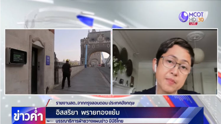 อังกฤษ 18 เม.ย. – สำนักข่าวไทยได้มีโอกาสสัมภาษณ์สดกับ “อิสสริยา พรายทองแย้ม” บรรณาธิการฝ่ายวางแผนข่าว บีบีซี ไทย กรุงลอนดอน ประเทศอังกฤษ เกี่ยวกับสถานการณ์การแพร่ระบาดของไวรัสโควิด-19 ที่อังกฤษ มีผู้ติดเชื้อสะสม 108,692 ราย เสียชีวิต 14,576 ราย ติดเชื้อเพิ่มวันนี้ 5,599 ราย อยู่อันดับ 5 ของโลก ทั้งจำนวนผู้ติดเชื้อและผู้เสียชีวิต.