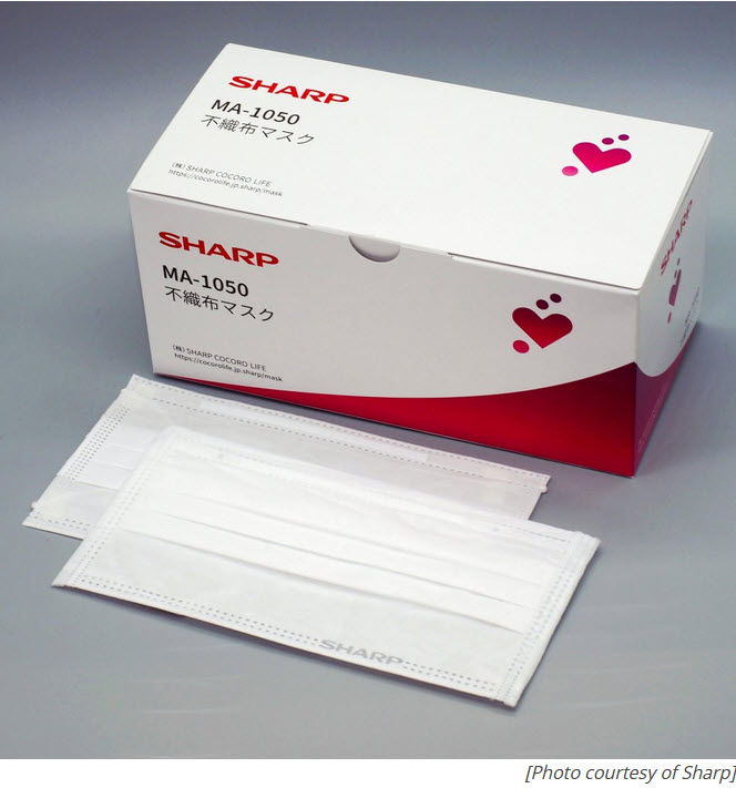 Among the recipients, Sharp, a home appliance maker based in Osaka, said it will sell face masks manufactured at its domestic display plant from 10 a.m. Tuesday on its e-commerce website at 3,278 yen for one box containing 50 masks, with 660 yen charged for shipping.