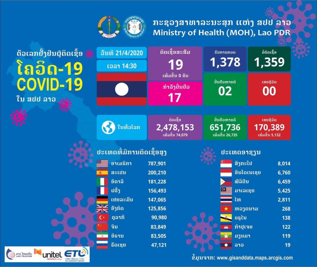 อย่างไรก็ตาม สปป.ลาวมีตัวเลขผู้ติดเชื้อต่ำสุดในอาเซียน ภาครัฐยังเน้นย้ำประชาชนปฏิบัติตามคำสั่งล็อกดาวน์อย่างเคร่งครัด