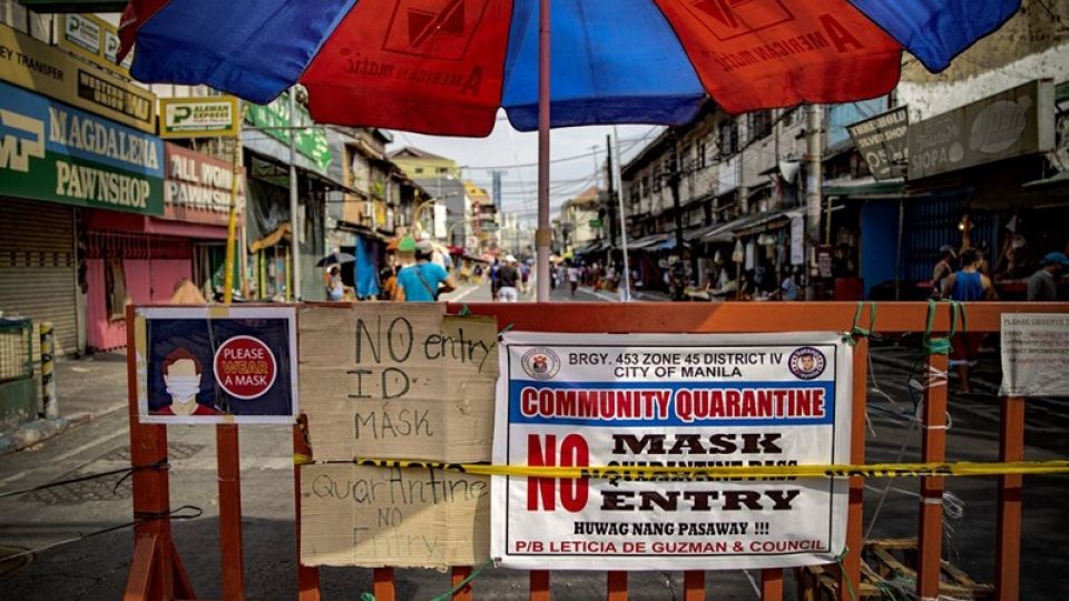 กรุงมะนิลาเป็นเมืองหนาแน่นที่สุดแห่งหนึ่งของโลก เขตมหานครมะนิลามีประชากรอาศัยอยู่ 13 ล้านคน แต่ช่วงระหว่างวันมีคนเข้ามาทำงานอีกหลายล้านคน มีผู้ป่วยและเสียชีวิตจากโควิด-19 กว่าสองในสามของทั้งประเทศที่มีผู้ป่วย 6,981 คน เสียชีวิต 462 คน ฟิลิปปินส์เป็นประเทศที่สามของโลกต่อจากจีนและอิตาลีที่ปิดเมืองและให้คนอยู่บ้าน โดยได้จำกัดการเข้าเมือง การเดินทาง การค้า และการรวมกลุ่มตั้งแต่วันที่ 12 มีนาคม หลังจากพบการติดเชื้อภายในประเทศรายแรกได้ 5 วัน จากนั้นห้ามคนเดินทางมาจากต่างประเทศตั้งแต่วันที่ 16 มีนาคม ยกเว้นชาวฟิลิปปินส์ที่ได้รับการอพยพกลับมา เพื่อไม่ให้ระบบสาธารณสุขตึงตัวจนรับไม่ไหว และได้เริ่มการตรวจหาเชื้อแต่เพิ่งเห็นผลเมื่อไม่กี่สัปดาห์ โดยตรวจไปได้แล้วเพียง 72,000 คน ด้านกระทรวงสาธารณสุขเผยว่า ยังเร็วเกินไปที่จะประกาศได้ว่าสามารถทำให้เส้นกราฟการติดเชื้อเป็นแนวราบได้แล้วหรือไม่.