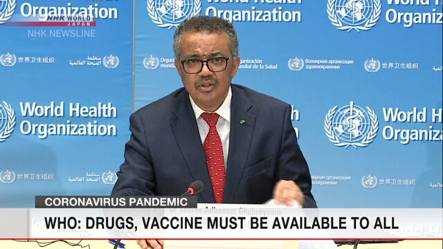 องค์การอนามัยโลกได้ประกาศความริเริ่มที่จะเร่งมือพัฒนายาและวัคซีนสำหรับไวรัสโคโรนาสายพันธุ์ใหม่ และรับประกันว่าผู้คนทั่วโลกจะเข้าถึงยาและวัคซีนนี้ได้ โดยบรรดาผู้นำของประเทศต่าง ๆ ได้แสดงความสนับสนุนอย่างเต็มที่