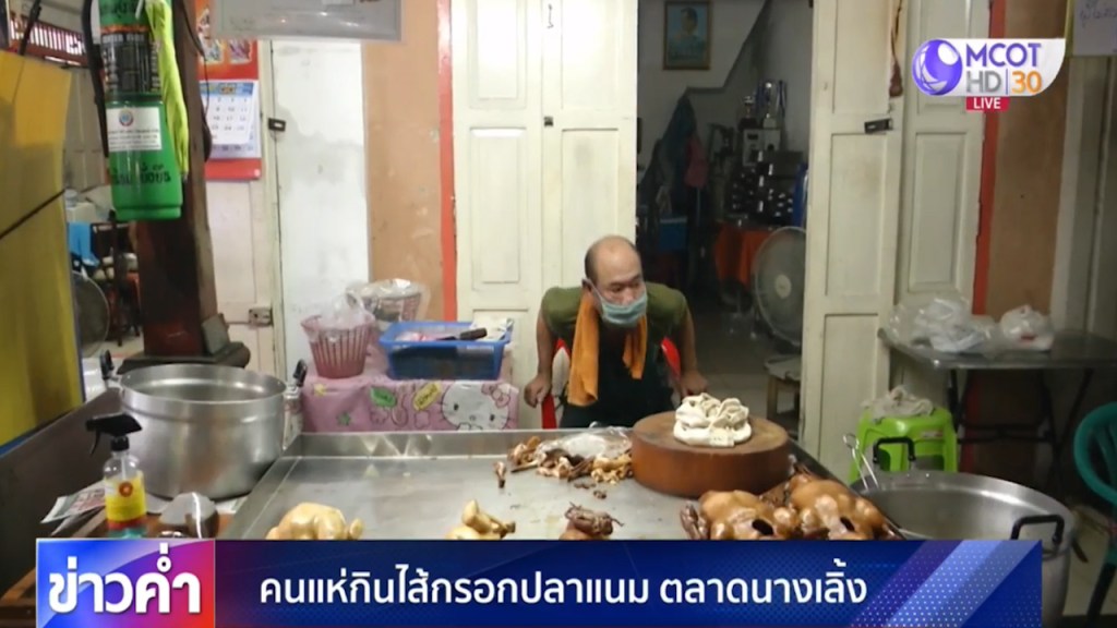 “ไส้กรอกปลาแนม” อาหารโบราณ ไส้กรอกข้าวหรือหมู ทานแนมกับปลาช่อนนึ่งยีจนฟู ผัก ถั่ว หอมซอย พริก ห่อด้วยผักกาดหอม รสชาติหวานเปรี้ยวเผ็ด ต้องเข้าคิวต่อแถวซื้อ เจ้าของร้านเล่าอย่างอารมณ์ดี บอกว่าช่วงโควิดลดปริมาณทำลงไปครึ่งหนึ่ง เหลือก็แจก สัปดาห์นี้ครบเดือนเริ่มกลับทำปริมาณเท่าปกติ ขายหมดทุกวัน