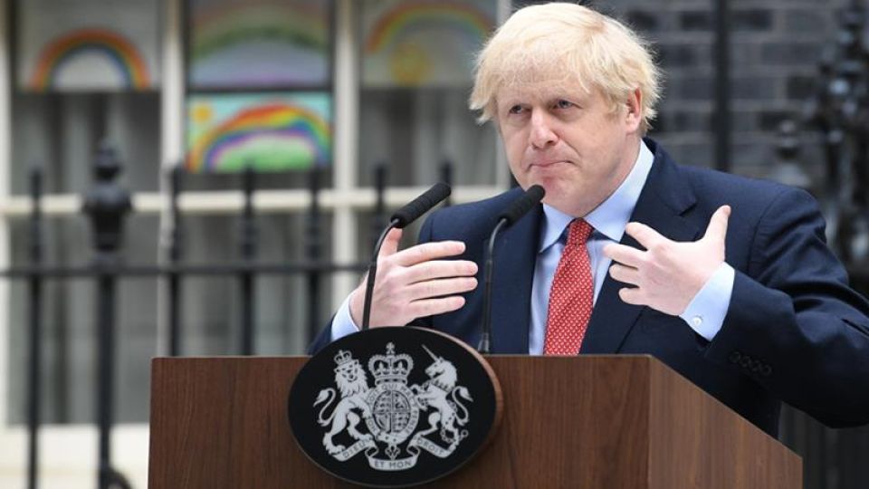 นายกรัฐมนตรีจอห์นสันกล่าวหน้าบ้านเลขที่ 10 ถนนดาวนิง ซึ่งเป็นบ้านพักนายกรัฐมนตรีในเช้าวันนี้ตามเวลาอังกฤษ และเป็นการปรากฏตัวครั้งแรกหลังหายป่วยจากโควิด-19 ว่า อังกฤษกำลังจะเริ่มพลิกสถานการณ์การระบาดนี้ แต่เขาจะไม่โยนทิ้งความพยายามและความเสียสละที่ประชาชนได้ทำมา ด้วยการผ่อนคลายมาตรการปิดเมืองเร็วเกินไป เขาขอโทษที่ห่างหายจากโต๊ะทำงานไปนานกว่าที่ต้องการจากการที่ป่วยและพักฟื้นมานานกว่าสามสัปดาห์ และขอขอบคุณรัฐมนตรีทุกคนที่ทำงานแทนเขา รวมทั้งประชาชนที่มีความอดทนและความกล้าหาญอย่างถึงที่สุด