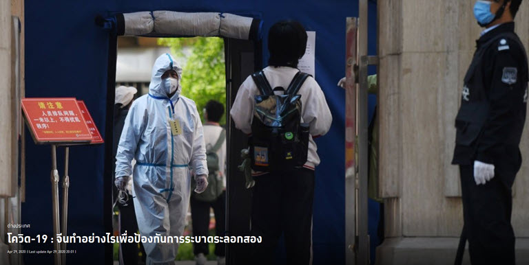 ขณะเดียวกัน นักเรียนมัธยมปลายหลายพันคนในกรุงปักกิ่งและนครเซี่ยงไฮ้ได้กลับไปเรียนที่โรงเรียนแล้วเมื่อวันที่ 27 เม.ย. ที่ผ่านมา ท่ามกลางมาตรการรักษาสุขอนามัยเข้มงวดที่รวมถึงการสวมหน้ากาก ลดขนาดชั้นเรียนและจัดเวลาพักกลางวันในโรงอาหารของโรงเรียนให้เหลื่อมกัน