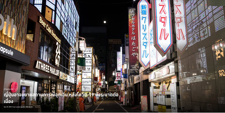 การประกาศสถานการณ์ฉุกเฉินของญี่ปุ่นให้อำนาจผู้ว่าการท้องถิ่นเพิ่มขึ้นในการขอให้ประชาชนอยู่บ้านและขอให้ธุรกิจต่างๆ ปิดให้บริการ แต่ไม่ได้กำหนดบทลงโทษในกรณีส่วนใหญ่ที่ไม่ปฏิบัติตาม โดยเป็นการพึ่งพาแรงกดดันทางสังคมและความเคารพทางการแทนให้คนปฏิบัติตามแทนการลงโทษ และในขณะที่สถานการณ์ฉุกเฉินใกล้จะสิ้นสุด เมื่อหมดช่วงวันหยุดฤดูใบไม้ผลิ ‘Golden Week’ หรือ ‘สัปดาห์ทอง’ ยังคงมีสัญญาณน่ากังวลถึงอัตราการตรวจหาเชื้อที่ต่ำของญี่ปุ่น โดยล่าสุดจำนวนผู้ติดเชื้อสะสมในญี่ปุ่นอยู่ที่ 13,895 ราย และมีผู้เสียชีวิตแล้ว 413 ราย ขณะที่อัตราส่วนการตรวจหาเชื้อในญี่ปุ่นอยู่ที่ 1.3 ต่อประชากร 1,000 ราย น้อยกว่าหลายเท่าตัวเมื่อเทียบกับเพื่อนบ้านอย่างเกาหลีใต้ซึ่งมีอัตราส่วนการตรวจหาเชื้ออยู่ที่ 12 ต่อประชากร 1,000 ราย