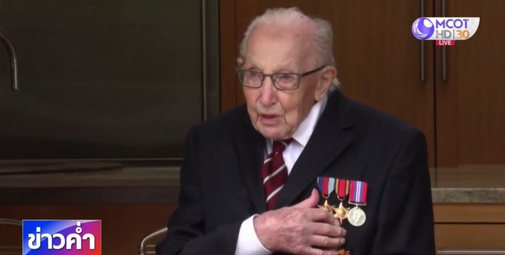 อังกฤษ 1 พ.ค. – อังกฤษร่วมฉลองวันเกิดครบ 100 ปี ให้คุณปู่ทอม มัวร์ อดีตทหารผ่านศึกที่ลุกขึ้นมาระดมเงินช่วยเหลือบุคลากรทางการแพทย์ต่อสู้กับโรคโควิด-19 ได้มากถึง 1,339 ล้านบาท เดิมตั้งใจว่าจะได้เงินบริจาคแค่ 1,000 ปอนด์ (กว่า 40,000 บาท) เท่านั้น ขณะที่สมเด็จพระราชินีนาถเอลิซาเบธที่ 2 พระราชทานเลื่อนยศให้คุณปู่ จากยศร้อยเอก เป็นพันเอกทอม มัวร์