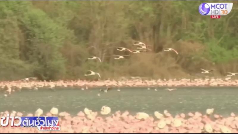 อินเดีย 2 พ.ค.- หลังการล็อกดาวน์เมืองต่างๆ ในอินเดีย ทำให้ฝูงนกฟลามิงโกสีชมพู หลายพันตัวลงมาหากินเต็มทะเลสาบ