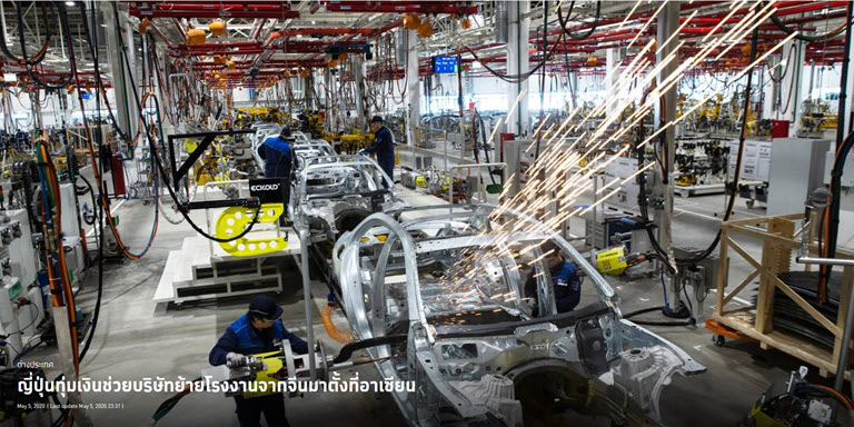 รัฐบาลญี่ปุ่นเตรียมให้ความช่วยเหลือบริษัทญี่ปุ่นย้ายโรงงานการผลิตไปยังประเทศในกลุ่มอาเซียน หลังโควิด-19 กระทบซัพพลายเชนที่พึ่งพาจีนมากเกินไป