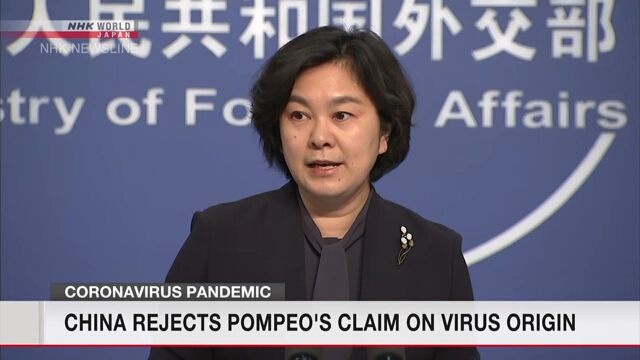 นางหัว ชุงหยิง โฆษกกระทรวงต่างประเทศของจีนกล่าวแก่ผู้สื่อข่าวเมื่อวันพุธที่ 6 พฤษภาคมว่า นายปอมเปโอไม่มีหลักฐานใดเลย โดยกล่าวว่าประเด็นต่าง ๆ ที่เกี่ยวเนื่องกับต้นกำเนิดของการระบาดนั้นควรอยู่ในการดูแลจัดการของนักวิทยาศาสตร์และผู้เชี่ยวชาญด้านการแพทย์มากกว่านักการเมืองที่อาจโป้ปดมดเท็จเพื่อผลประโยชน์ทางการเมืองในประเทศของตัวเอง