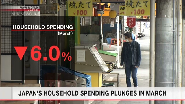 ยอดการใช้จ่ายของครัวเรือนในญี่ปุ่นเมื่อเดือนมีนาคมลดลงจากเดือนเดียวกันของปีก่อนหน้า เนื่องจากครอบครัวจำนวนมากอยู่กับบ้าน ท่ามกลางการระบาดใหญ่ของไวรัสโคโรนาสายพันธุ์ใหม่