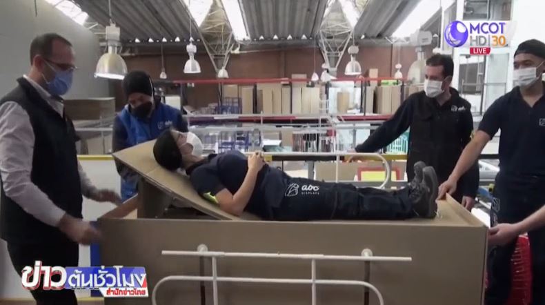 โคลอมเบีย 9 พ.ค.- บริษัทผลิตกระดาษแข็งแห่งหนึ่งในโคลอมเบียผุดไอเดียนำกระดาษแข็งมาผลิตเป็นเตียงสำหรับผู้ป่วยโควิด -19 เพื่อบริจาคให้แก่โรงพยาบาล และสามารถดัดแปลงให้เป็นโลงศพได้ทันที