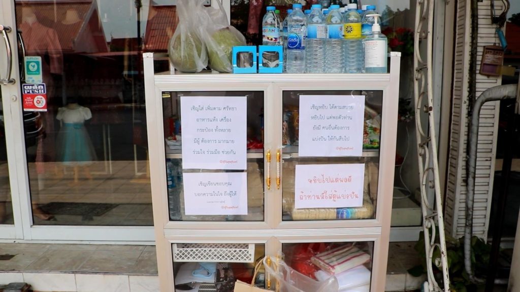 สุรินทร์- เมื่อวันที่ 10 พฤษภาคม ผู้สื่อข่าวรายงานว่า หลังจากมีกลุ่มประชาชนคนสุรินทร์ รวมตัวกันทางโซเซียลผุดโครงการ ตู้ปันสุขสุรินทร์ เพื่อช่วยเหลือผู้ที่ได้รับผลกระทบจากสถานการณ์โควิด-19 นำร่องตั้งตู้บริการ 2 แห่งในเขตเทศบาลเมืองสุรินทร์ โดยจะใช้ตู้กับข้าวตั้งไว้หน้าร้านค้า เพื่อให้ผู้ใจบุญนำเครื่องอุปโภค-บริโภคที่จำเป็นการต่อการดำรงชีพ ทั้งปลากระป๋อง บะหมี่สำเร็จรูป ข้าวสาร ไข่ น้ำดื่ม ขนม เป็นต้น