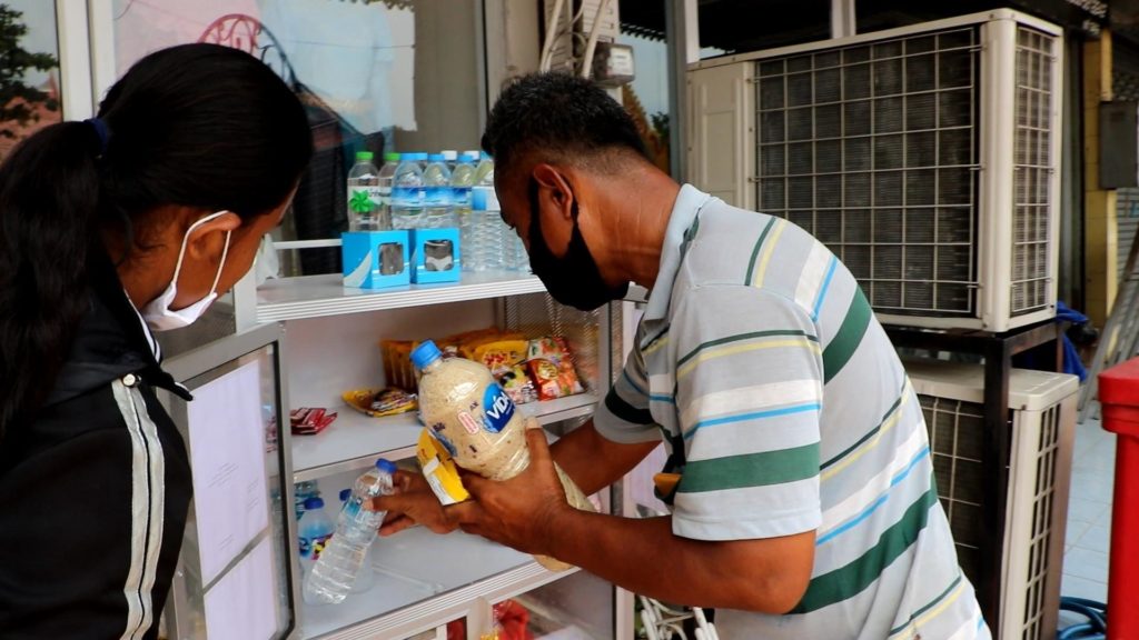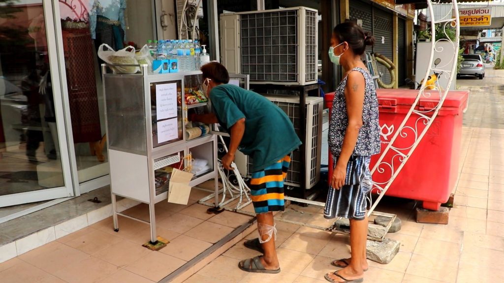 ด้านนางสาวณภาสุข ขันทอง ลูกจ้างของร้านขายชุดร้านขายชุดราตรี ผู้ดูแลตู้ปันสุข แทนเจ้าของร้านบอกว่า นำตู้มาตั้งเมื่อวาน ก็จะมีผู้คนมาขอรับสิ่งของอย่างต่อเนื่อง ซึ่งเวลามาหยิบเอาของ ประชาชนก็จะรู้ ซึ่งเรามีการเขียนไว้ที่หน้าตู้อยู่แล้ว หรือไม่เราก็จะออกมาแจ้งให้ทราบ ประชาชนเข้าใจดี ส่วนสิ่งของถ้าหมดก็จะนำมาเติมเรื่อยๆและผู้ใจบุญซื้อของนำมาบริจาคเข้าตู้ไว้อย่างต่อเนื่อง หากผู้ที่กำลังลำบากต้องการอาหาร ก็สามารถมารับได้ตลอดเวลา ซึ่งช่วงกลางคืนจะมีสิ่งของในตู้จำกัด เพราะไม่มีใครดูแลในช่วงนั้น แต่ถ้ามาในช่วงกลางวันก็จะมีของในตู้ตลอด