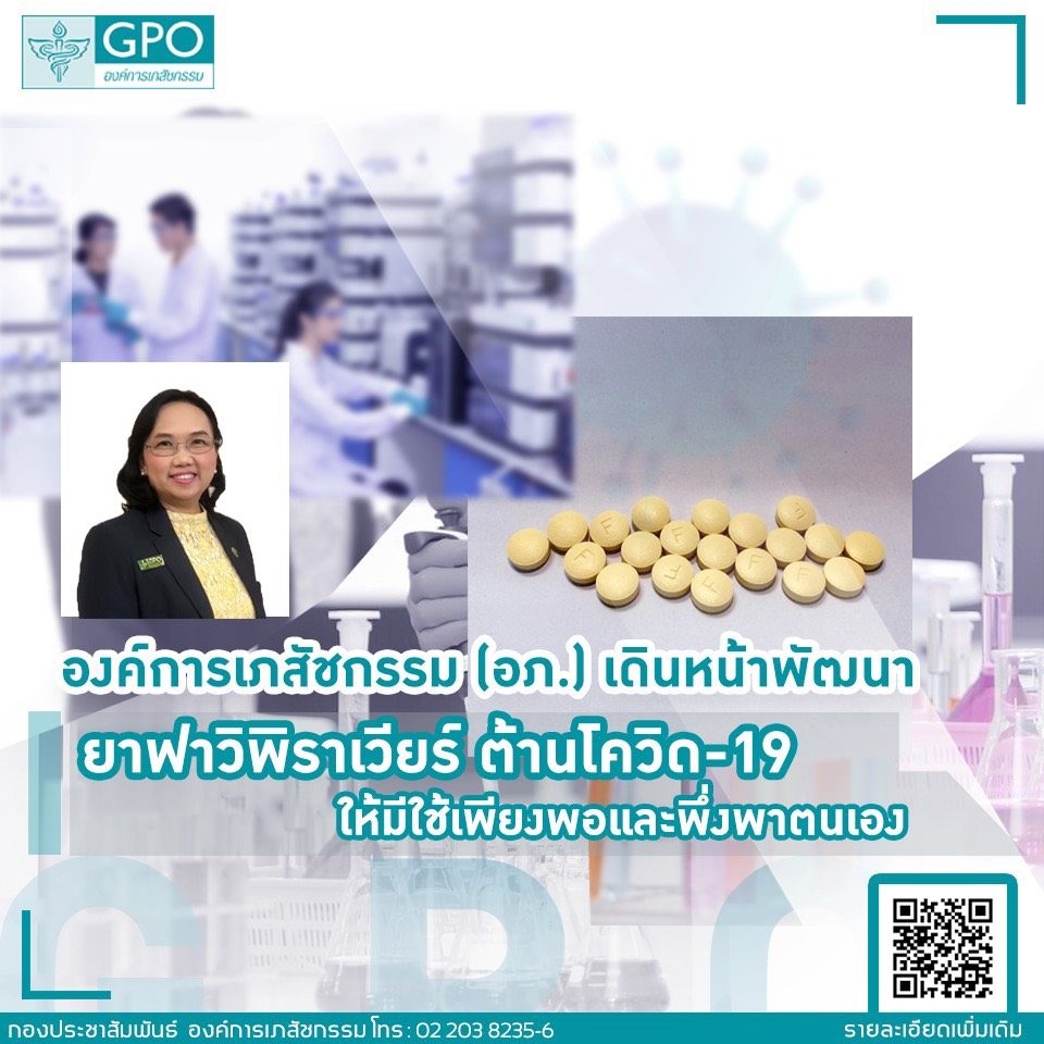 เมื่อวันที่ 11 พฤษภาคม ที่ องค์การเภสัชกรรม ภญ.นันทกาญจน์ สุวรรณปิฎกกุล ผู้เชี่ยวชาญพิเศษ องค์การเภสัชกรรม(อภ.) กล่าวว่า อภ.ได้วิจัยและพัฒนา ยาฟาวิพิราเวียร์ (Favipiravir) มาตั้งแต่กลางเดือนมีนาคม โดยในระยะแรกนี้ได้จัดซื้อตัวอย่างวัตถุดิบมาทดลองพัฒนาสูตรเบื้องต้น 100 กรัมและสั่งซื้อเพิ่มอีก 5 กิโลกรัมที่จะมาถึงเดือนมิถุนายนนี้ เพื่อนำมา พัฒนาสูตรตำรับ และขยายขนาดการผลิต ตลอดจนศึกษาความคงสภาพ และประสิทธิผลทางชีวสมมูล คาดว่าจะใช้เวลาประมาณ 1 ปี จะมีข้อมูลพร้อมยื่นขึ้นทะเบียน