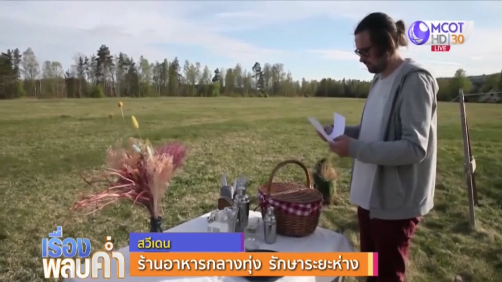 สวีเดน 14 พ.ค.-ไปดูร้านอาหารกลางทุ่ง ในเมืองรันซาเตอร์ ประเทศสวีเดน ไม่ต้องกลัวว่าจะติดเชื้อไวรัสโควิด-19 จากใคร เพราะมีเพียงโต๊ะและเก้าอี้เพียงชุดเดียว ตั้งอยู่กลางทุ่งหญ้าโล่งกว้างใหญ่ อาหารที่สั่งพ่อครัวจะทำส่งมาทางรอกจนถึงโต๊ะ แถมยังไม่ระบุราคา โดยให้ลูกค้าคิดเอาเองว่าอยากจะจ่ายค่าอาหารมื้อนี้เท่าไหร่.