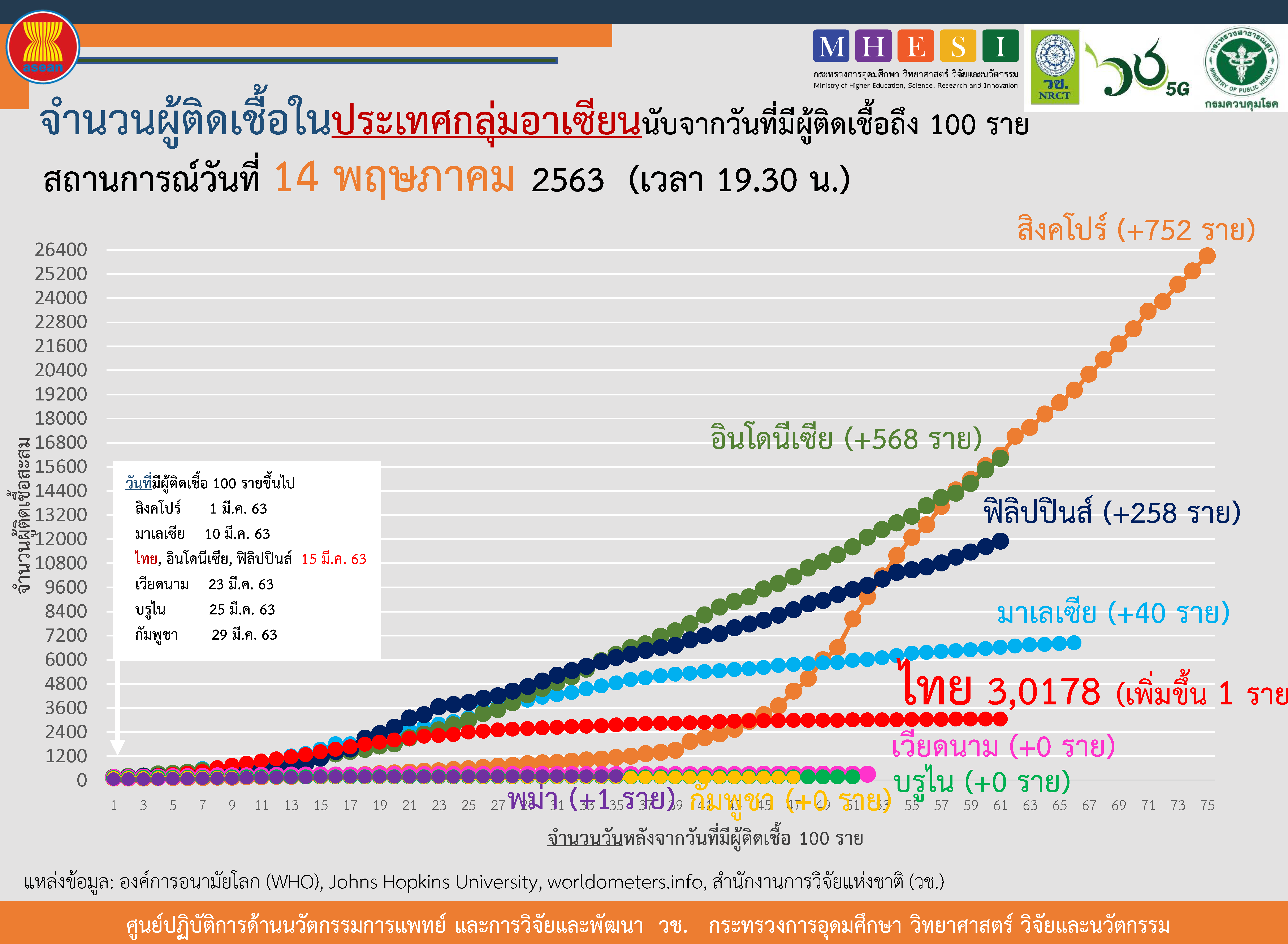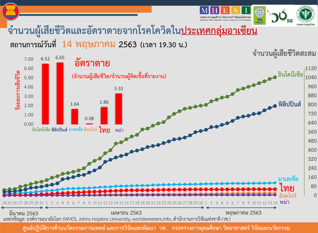 สำนักงานการวิจัยแห่งชาติ (วช.) กระทรวงการอุดมศึกษาฯ (อว.) ประมวลสถานการณ์การติดเชื้อโควิด-19 ในอาเซียน ดังนี้