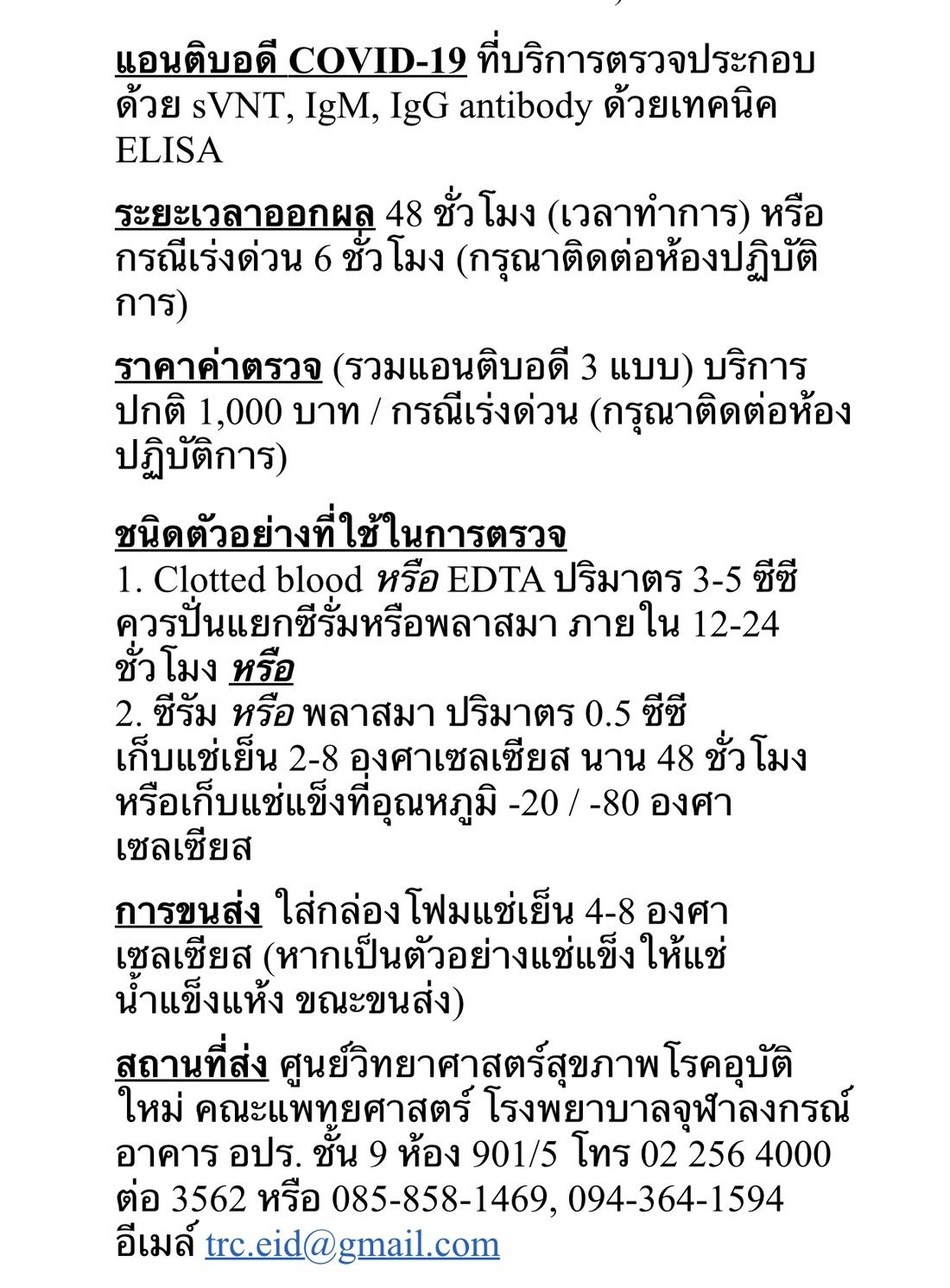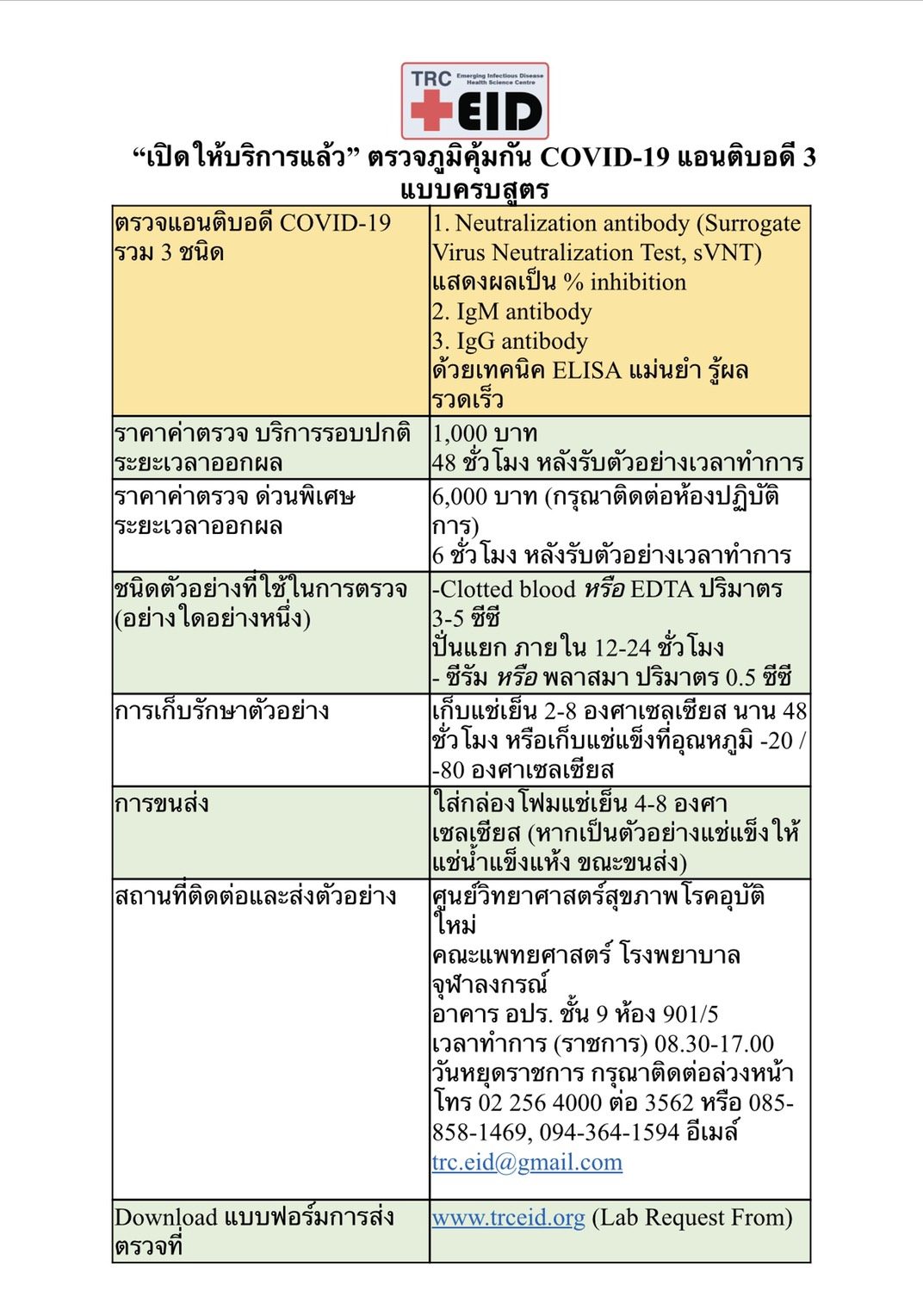 นอกจากนี้ วันเดียวกัน ศ.นพ.ธีระวัฒน์ โพสต์ในเฟซบุ๊กระบุอีกว่าขณะนี้ ที่ศูนย์วิทยาศาสตร์สุขภาพฯ ได้เปิดบริการการหาภูมิตอบสนองต่อการติดเชื้อโควิด-19 รวมทั้งบอกว่ามีภูมิที่ดีสามารถยับยั้งไวรัสได้ด้วยหรือไม่แล้ว