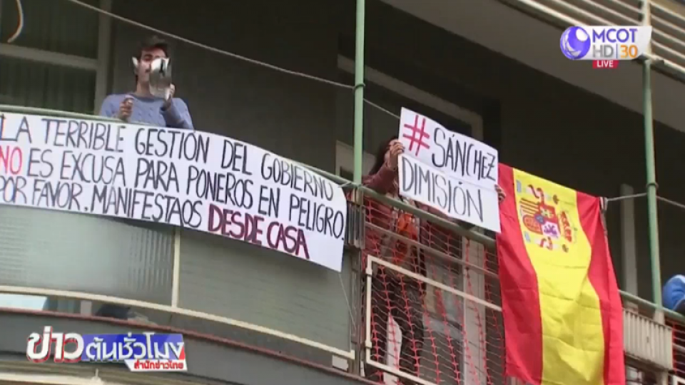 ชาวกรุงมาดริด เมืองหลวงของสเปน ชุมนุมประท้วงตามท้องถนนติดต่อกันเป็นวันที่ 5 เนื่องจากไม่พอใจระบบการจัดการโควิด-19 ของรัฐบาล กลุ่มผู้ประท้วงอ้างว่า รัฐบาลล้มเหลวในการเตรียมพร้อมรับมือและจัดการกับการแพร่ระบาด ขณะที่เศรษฐกิจสเปนได้รับผลกระทบอย่างหนักจากมาตรการล็อกดาวน์ที่ดำเนินมาแล้วร่วม 2 เดือน