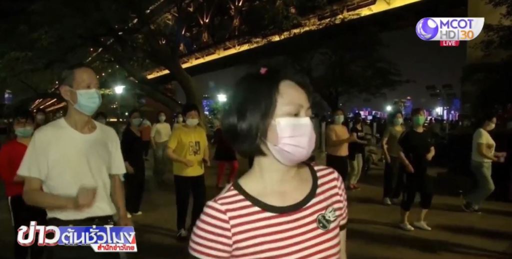 ชาวอู่ฮั่นที่มาร่วมเต้นรำ ทุกคนต่างสวมหน้ากากอนามัย และเว้นระยะห่างกัน 1 เมตร เป็นอย่างน้อย ผู้ที่มาร่วมเต้นรำคนหนึ่งกล่าวว่า เต้นรำทั้งที่สวมหน้ากากอนามัยทำให้หายใจลำบาก แต่ก็ต้องทน สำหรับสถานการณ์ไวรัสโควิด-19 ในจีนเมื่อวานนี้ มีผู้ติดเชื้อรายใหม่เพียง 5 คน ลดจาก 8 คนเมื่อวันศุกร์.