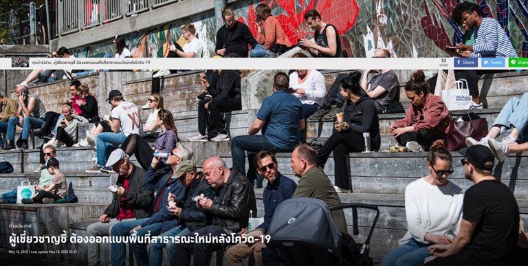 สถาปนิกชื่อดังและนักวิชาการด้านผังเมืองชาวดัตช์ระบุว่า ต้องออกแบบพื้นที่สาธารณะใหม่ หลังจากการแพร่ระบาดของโควิด-19 สิ้นสุดลง เพื่อสร้างเมืองที่ยั่งยืน