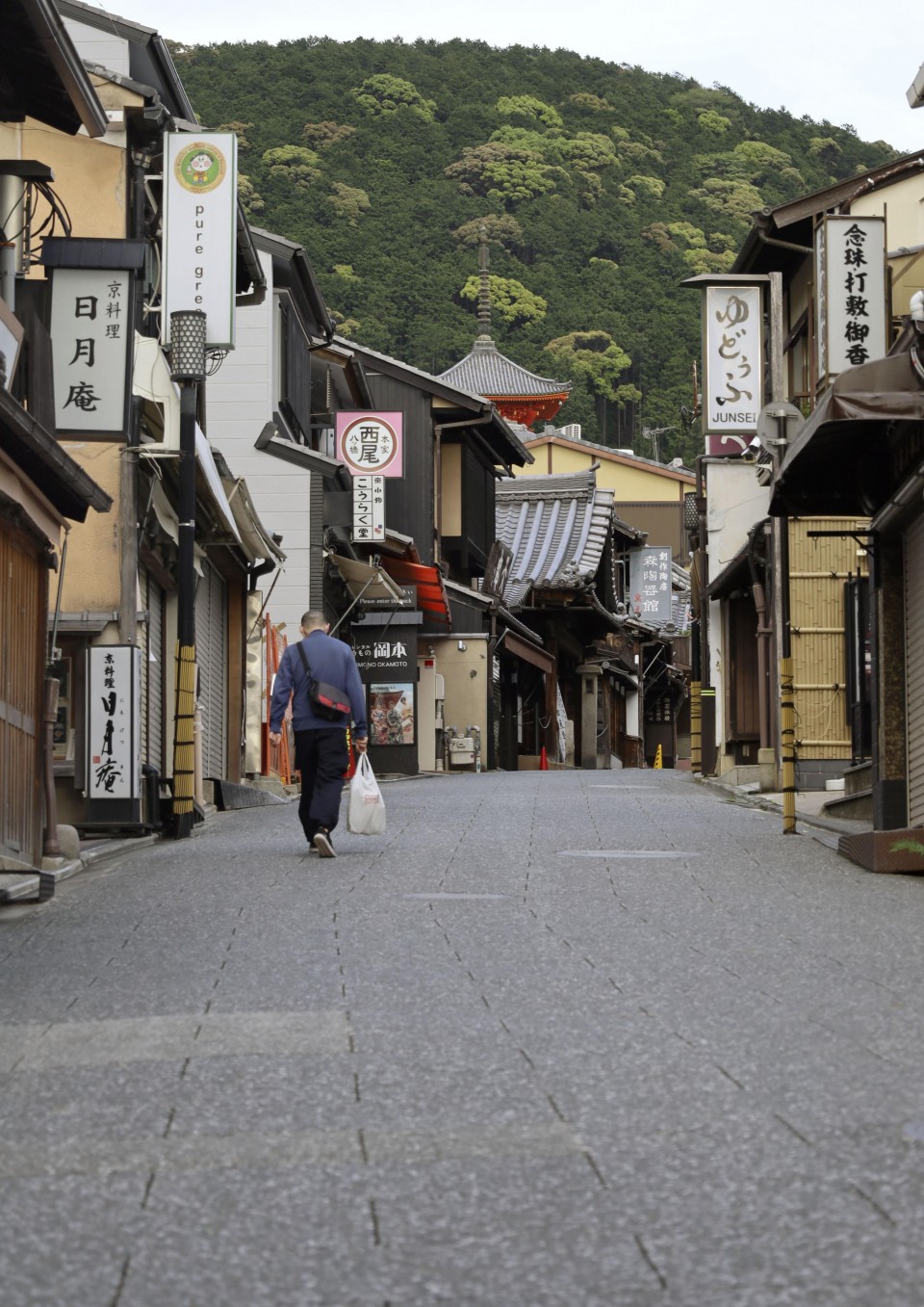 (Few people walk near Kiyomizu temple in Kyoto on May 19, 2020, while the western Japan prefecture remains under a state of emergency over the coronavirus outbreak.)