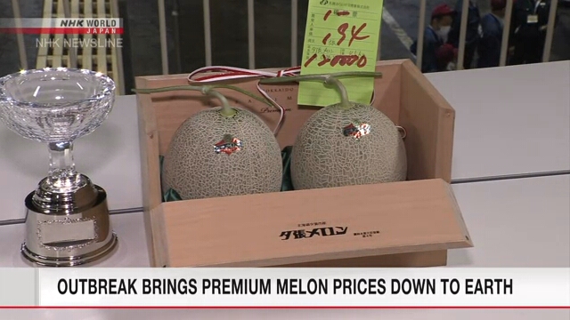 เมลอนคู่ระดับพรีเมียมจากฮอกไกโดทางเหนือของญี่ปุ่นเข้ารับการประมูลครั้งแรกในปีนี้ แต่ทำราคาได้เพียง 1 ใน 40 ของราคาสูงสุดเป็นประวัติการณ์ที่เคยทำได้เมื่อปีที่แล้ว สาเหตุอาจมาจากสถานการณ์เศรษฐกิจที่ย่ำแย่ในขณะนี้