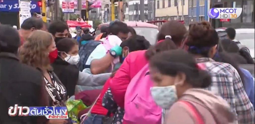 ที่ตลาดขายเสื้อผ้าในกรุงลิมา มีคนออกมาซื้อสินค้ากันอย่างเนืองแน่น โดยไม่สนใจเรื่องการแพร่ระบาดของโควิด-19 แม้ว่าในแต่ละวันจะมีผู้ติดเชื้อเพิ่มหลายพันคน เมื่อวันศุกร์ที่ผ่านมารัฐบาลเปรูได้ขยายเวลาการประกาศสถานการณ์ฉุกเฉินออกไปจนถึงสิ้นเดือนมิถุนายน นับว่าเป็นอีกประเทศหนึ่งที่มีการประกาศสถานการณ์ฉุกเฉินยาวนานที่สุด ขณะที่ยอดผู้ติดเชื้อสะสมอยู่ที่เกือบ 130,000 คน และเสียชีวิตราว 3,800 คน ผู้ติดเชื้อร้อยละ 62 อยู่ในกรุงลิมา.
