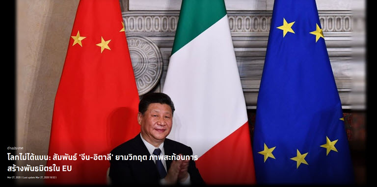 ความสัมพันธ์ระหว่างจีนกับอิตาลี จึงมิใช่แค่ “เพื่อนในยามทุกข์ยาก คือเพื่อนแท้” แต่ยังเป็นพันธมิตรที่มีผลประโยชน์ร่วมกันด้วย