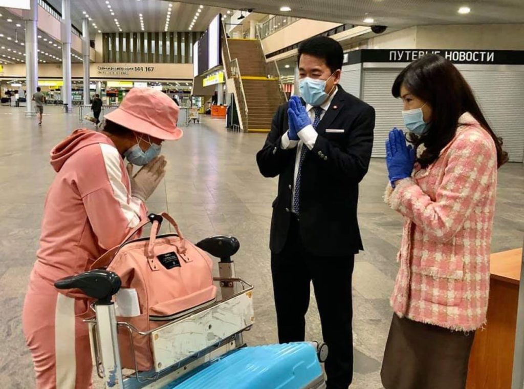 นายธนาธิป อุปัติศฤงค์ เอกอัครราชทูต ณ กรุง มอสโก และข้าราชการ ได้ส่งแรงงานและนักเรียนไทยในรัสเซีย อีกจำนวน 50 คน ที่มีความจำเป็นเร่งด่วน เดินทางกลับด้วยเที่ยวบินพิเศษของสายการบินแอโรฟลอต