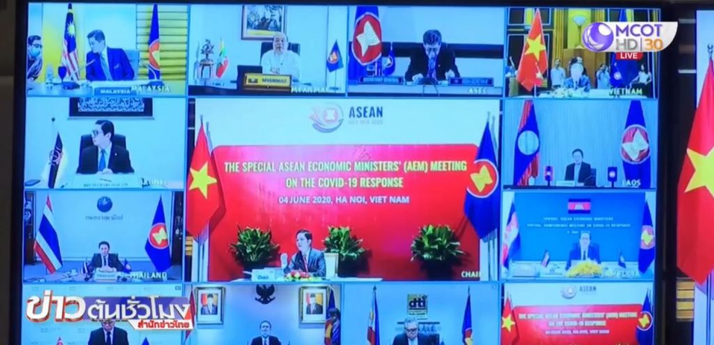 4 มิ.ย. – รัฐมนตรีด้านเศรษฐกิจของชาติสมาชิกอาเซียน ร่วมประชุมทางไกลผ่านระบบวิดีโอคอนเฟอเรนซ์ เพื่อหารือความร่วมมือในการแก้ปัญหาเศรษฐกิจซึ่งได้รับผลกระทบจากการแพร่ระบาดของโรคโควิด-19