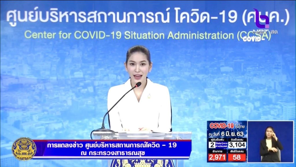 เมื่อวันที่ 6 มิถุนายน ที่กระทรวงสาธารณสุข (สธ.) พญ.พรรณประภา ยงค์ตระกูล ผู้ช่วยโฆษกศูนย์บริหารสถานการณ์การแพร่ระบาดของโรคติดเชื้อไวรัสโคโรนา 2019 (โควิด-19)(ศบค.) แถลงข่าวความคืบหน้าของสถานการณ์โรคติดเชื้อไวรัสโคโรนา 2019