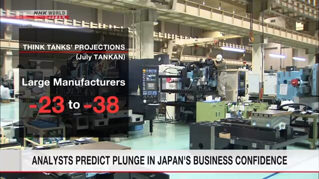 นักวิเคราะห์ที่หน่วยงานมันสมองของเอกชน 10 แห่งมองว่า ดัชนีสำหรับบริษัทผู้ผลิตรายใหญ่จะลดลงไปอยู่ที่ระหว่างติดลบ 23 ถึงติดลบ 38 โดยจะเป็นตัวเลขต่ำที่สุดนับตั้งแต่ปี 2552 ซึ่งเป็นช่วงที่เศรษฐกิจตกต่ำภายหลังวิกฤตการเงินโลก ทั้งนี้ตัวเลขในผลการสำรวจครั้งก่อนหน้านี้เมื่อเดือนมีนาคมอยู่ที่ติดลบ 8