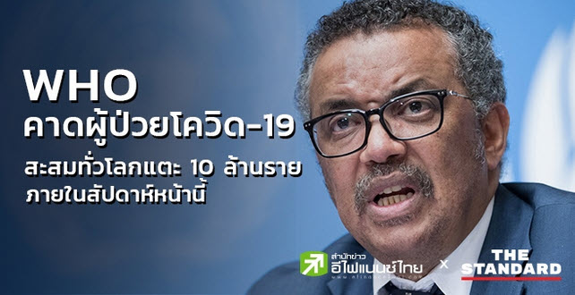 เมื่อวานนี้ (24 มิถุนายน) ดร.ทีโดรส อัดฮานอม กีบรีเยซุส ผู้อำนวยการใหญ่องค์การอนามัยโลก (WHO) ระบุว่า ตามข้อมูลของ WHO มีผู้ติดโควิด-19 สะสมแล้วกว่า 9.1 ล้านราย และคาดว่าสถิติดังกล่าวจะพุ่งสูงแตะ 10 ล้านรายภายในสัปดาห์ที่จะถึงนี้ โดยเพิ่มขึ้นเฉพาะในเดือนที่ผ่านมากว่า 4 ล้านราย