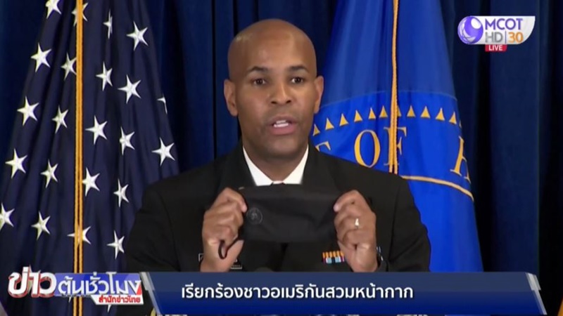 สหรัฐ 1 ก.ค. – เจ้ากรมการแพทย์ทหารสหรัฐเรียกร้องให้ชาวอเมริกันสวมใส่หน้ากากในที่สาธารณะ เพื่อร่วมกันหยุดยั้งการแพร่ระบาดของเชื้อไวรัสสายพันธุ์ใหม่