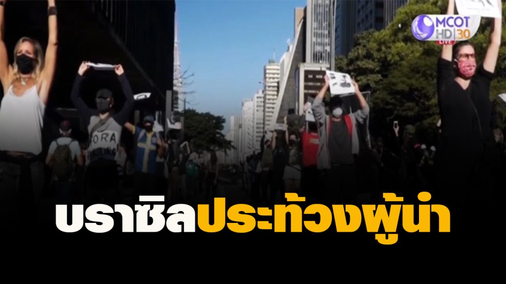 ชาวบราซิลหลายสิบคนในเมืองเซาเปาโล พากันชุมนุมประท้วงประธานาธิบดีชาอีร์ โบลโซนาโร เนื่องจากไม่พอใจนโยบายการต่อสู้โควิด-19 และการใช้ความรุนแรงของตำรวจ