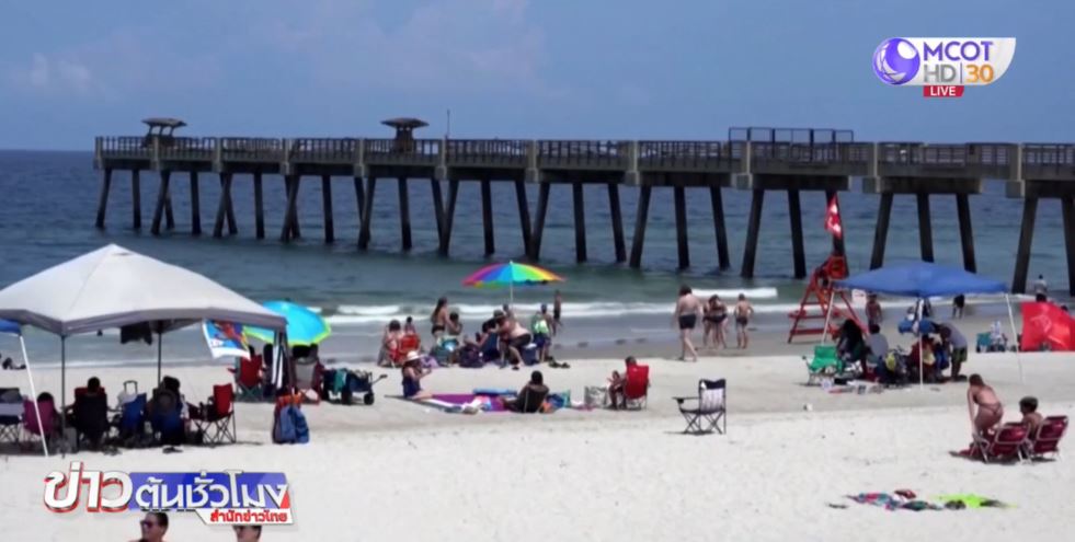 ชาวอเมริกันในรัฐฟลอริดาของสหรัฐ ต่างพากันไปเที่ยวฉลองวันชาติสหรัฐ ที่ชายหาดเมืองแจ็คสันวิลล์ อย่างแน่นขนัด แม้ตัวเลขผู้ติดเชื้อโควิด-19 รายใหม่ในรัฐฟลอริดา จะยังเพิ่มวันละกว่า 10,000 คน อย่างต่อเนื่องถึง 3 วันแล้วก็ตาม เพียง 4 วันแรกของเดือนนี้ มีถึง 14 รัฐ ที่มีผู้ติดเชื้อรายใหม่เพิ่มขึ้นอย่างต่อเนื่อง โดยเฉพาะรัฐทางใต้และตะวันตก