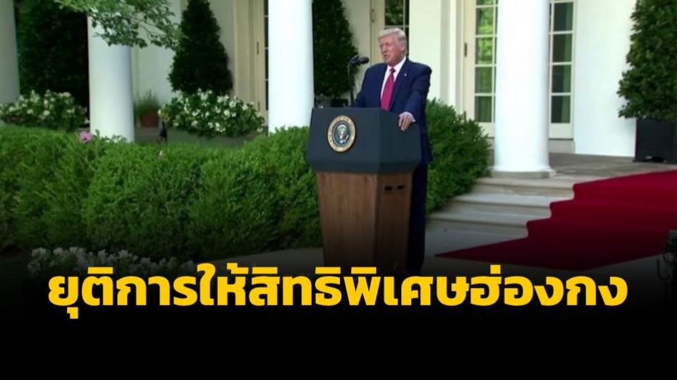 วอชิงตัน 15 ก.ค. – ประธานาธิบดีโดนัลด์ ทรัมป์ ผู้นำสหรัฐแถลงว่า ได้ลงนามในกฎหมายและคำสั่งผู้บริหารยุติการให้สิทธิพิเศษแก่ฮ่องกงแล้ว โดยแต่นี้ไปฮ่องกงจะไม่ได้รับสิทธิพิเศษ ไม่ได้รับการปฏิบัติทางเศรษฐกิจแบบพิเศษ และไม่มีการส่งออกเทคโนโลยีที่อ่อนไหวต่อความมั่นคงให้กับฮ่องกงอีกต่อไป