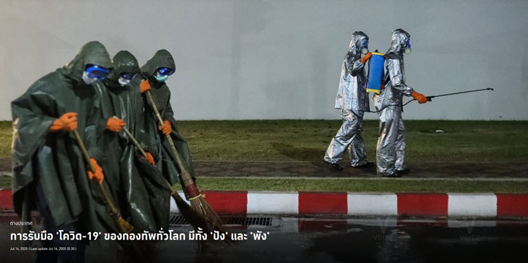 รัฐบาลหลายประเทศสั่งกองทัพร่วมมือหน่วยงานสาธารณสุข ควบคุม-ป้องกันโรคโควิด-19 ทหารจึงได้รับการยกย่องในฐานะ ‘วีรบุรุษ’ แต่หลายครั้งการจัดการในกองทัพหละหลวม ทำให้ทหารเป็นอีกกลุ่มที่เสี่ยงติดเชื้อ ทั้งยังเกิดผลกระทบต่อสังคมในวงกว้าง