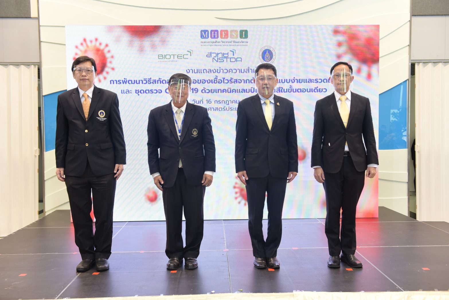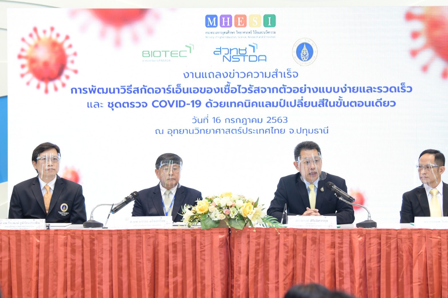 สำนักงานพัฒนาวิทยาศาสตร์และเทคโนโลยีแห่งชาติ (สวทช.) กระทรวงการอุดมศึกษา วิทยาศาสตร์ วิจัยและนวัตกรรม (อว.) ร่วมกับ มหาวิทยาลัยมหิดล พัฒนาวิธีสกัดอาร์เอ็นเอ (RNA) ของเชื้อไวรัสโคโรนาสายพันธุ์ใหม่ (SARS-CoV-2) จากตัวอย่างแบบง่าย และ ชุดตรวจโควิด-19 ด้วยเทคนิคแลมป์เปลี่ยนสีในขั้นตอนเดียว
