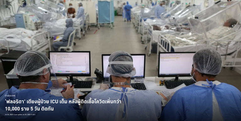 โรงพยาบาลรัฐฟลอริดาของสหรัฐฯ ไม่มีเตียงสำหรับผู้ป่วยโควิดที่อยู่ในภาวะขั้นวิกฤต หลังผู้ติดเชื้อรายใหม่เพิ่มขึ้นอย่างต่อเนื่อง และมีมากกว่า 3.5 แสนราย