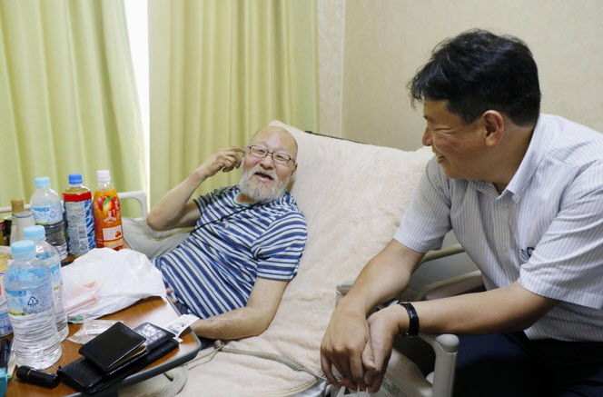 “This was supposed to be temporary housing for me, but now it looks like it will be my final home,” Kimura said of his 3-1/2 mat tatami room in Yokohama’s Kotobuki district, which is furnished with a TV, microwave, portable toilet, and nursing care bed.
