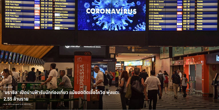 เมื่อวันที่ 30 ก.ค. กระทรวงสาธารณสุขบราซิลรายงานว่ามีผู้ติดเชื้อโควิด-19 รายใหม่เพิ่มขึ้นถึง 69,074 ราย ซึ่งเป็นจำนวนที่มากที่สุดนับตั้งแต่มีการแพร่ระบาดของโควิด-19 ในประเทศ ส่งผลให้บราซิลมีผู้ติดเชื้อสะสมแล้วกว่า 2.55 ล้านราย และมีผู้เสียชีวิตจากการติดเเล้วกว่า 90,000 ราย