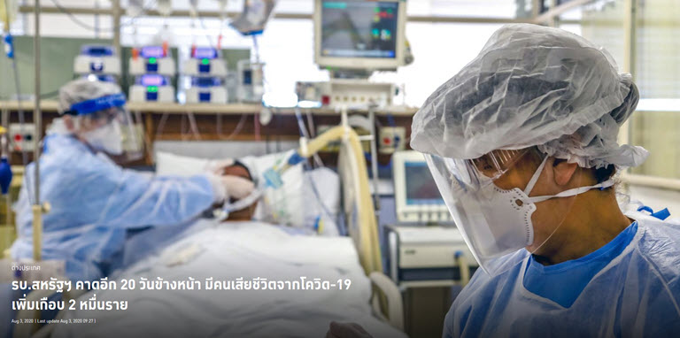 หน่วยงานรัฐบาลสหรัฐฯ คาดการณ์ในอีก 20 วันข้างหน้าจะมีผู้เสียชีวิตจากโควิด-19 ในประเทศเพิ่มขึ้นอีกเกือบ 20,000 ราย ขณะที่กองทัพไทยระงับแผนการส่งทหารไปฝึกในฮาวาย หลังจากพบทหารติดเชื้อโควิด-19 กลับมาหลายราย