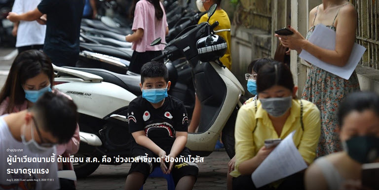 นายกรัฐมนตรีของเวียดนามระบุว่า ต้นเดือน ส.ค. ถือเป็นช่วงเวลาชี้ขาดสำหรับการป้องกันการระบาดเป็นวงกว้างของโควิด-19 หลังจากที่เวียดนามพบผู้ติดเชื้อรายใหม่ในประเทศอีกครั้งในรอบกว่า 3 เดือน
