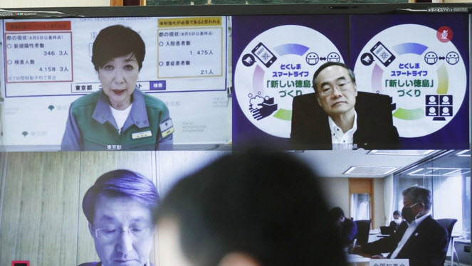 Thirty-six of the 47 governors who participated in the meeting also exchanged views on six types of data to assess the spread of infections shown by a government advisory panel the previous day, including hospital bed occupancy rates, the percentage of people testing positive, and the weekly tally of newly reported infections per 100,000 people.